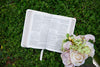 Details: The KJV Bride’s Bible is the perfect way to start marriage off right―with God’s Word at the center. Bound in classic white Leathersoft™ this Bible will take its place as a treasured family heirloom in the years to come. With the timeless beauty of the King James Version, a presentation page, gilded page edges, and a satin ribbon marker, this Bible is the perfect gift for engagement celebrations and bridal showers. Features include: Exclusive KJV Comfort Print® Words of Christ in red Special presentation pages Gilded page edges Clear and readable 6.5-point print size Satin ribbon marker